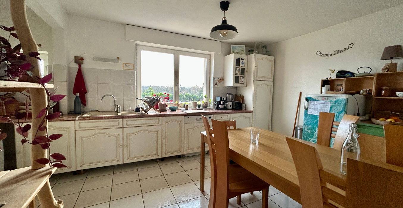 Au sein d'une copropriété à taille humaine, découvrez cet appartement traversant 3/4P sans vis à vis d'une superficie de 91m2 carrez situé au 1er et dernier étage sans ascenseur. Il se compose de: