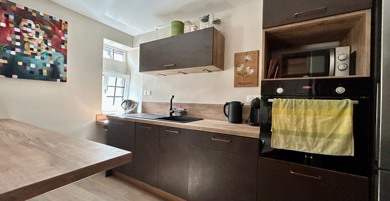 Au sein d'une authentique bâtisse Alsacienne de 1650 à taille humaine (5 lots), bel appartement 3P duplex sans vis à vis d'une superficie de 64m2 situé au 1er et dernier étage sans ascenseur. (Rénovation qualitative de 2023). Il se compose de: